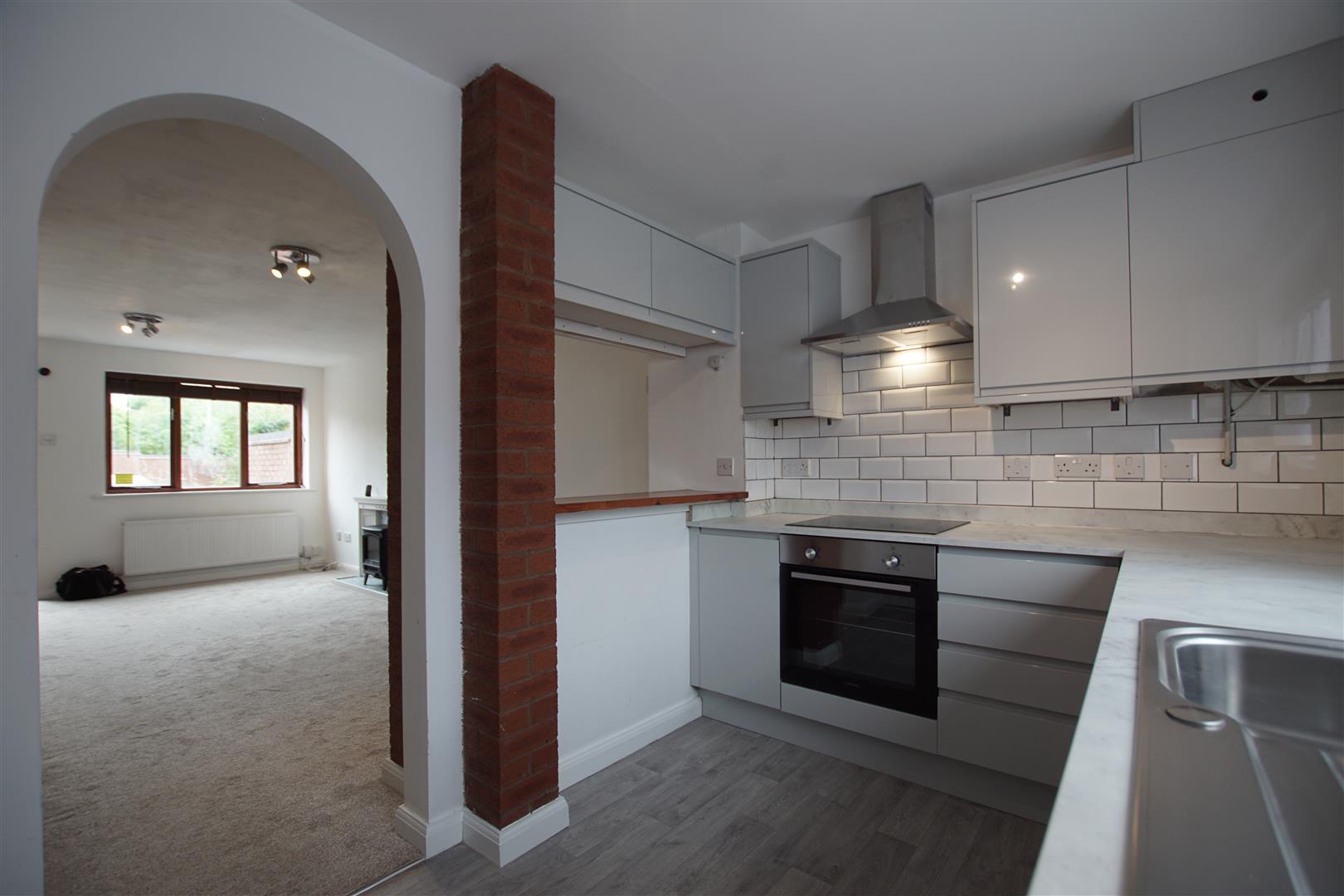 With double glazed window to the front, radiator, television aerial point and telephone point, fireplace, door to understairs cloaks cupboard, and breakfast bar with archway to the side leading through to the