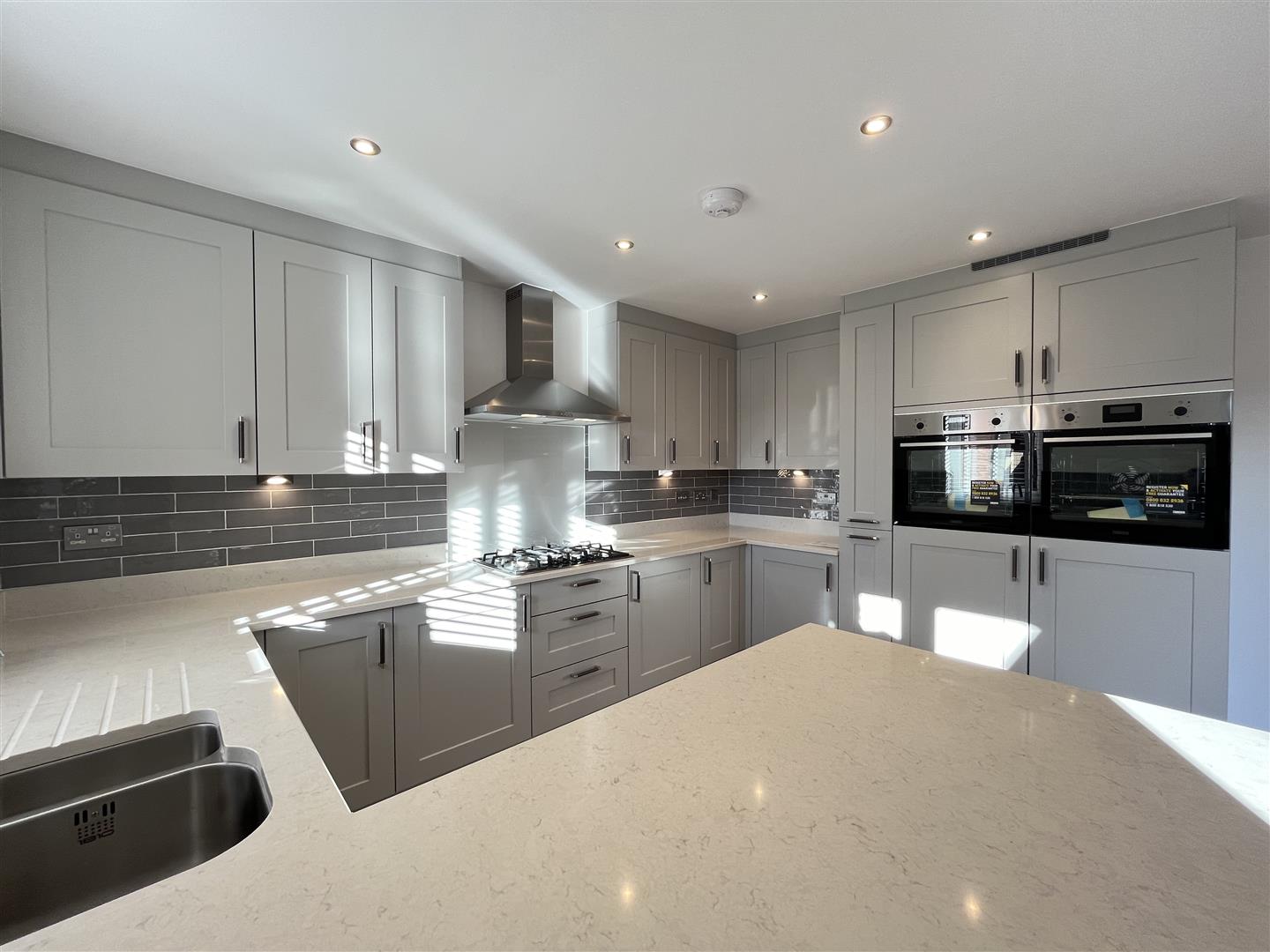 The kitchen area has attractive work surfacing extending around the room with a Zanussi V-ring gas hob at a comprehensive range of base units under incorporating the Zanussi full size dishwasher, the comprehensive range of eyelevel wall cupboards with under unit lighting and cooker hood. Bank of tall larder units with pull out spice rack, and twin Zanussi electric ovens, integrated freezer and separate integrated refrigerator.