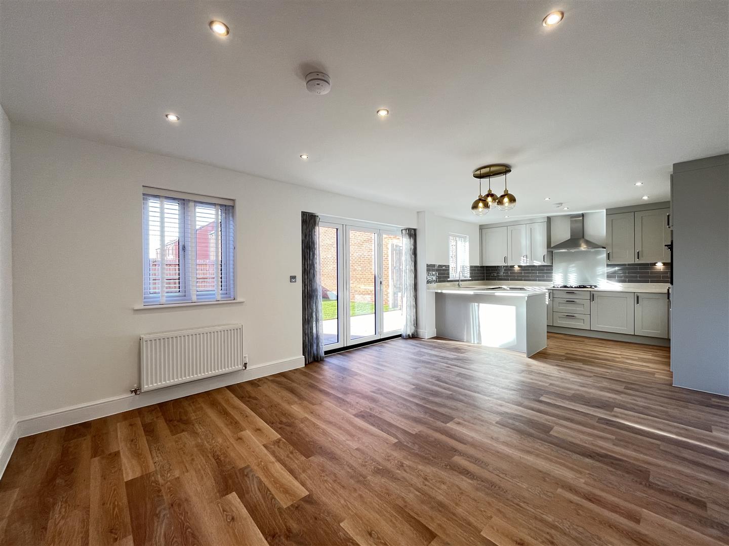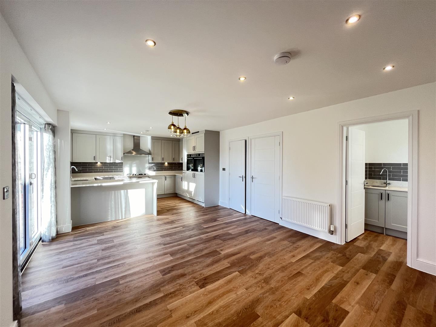 Beautiful full width open plan, living/dining/fitted kitchen with double glaze windows and sliding bifold opening onto the rear patio. Radiators, numerous power points, TV point and phone point.
