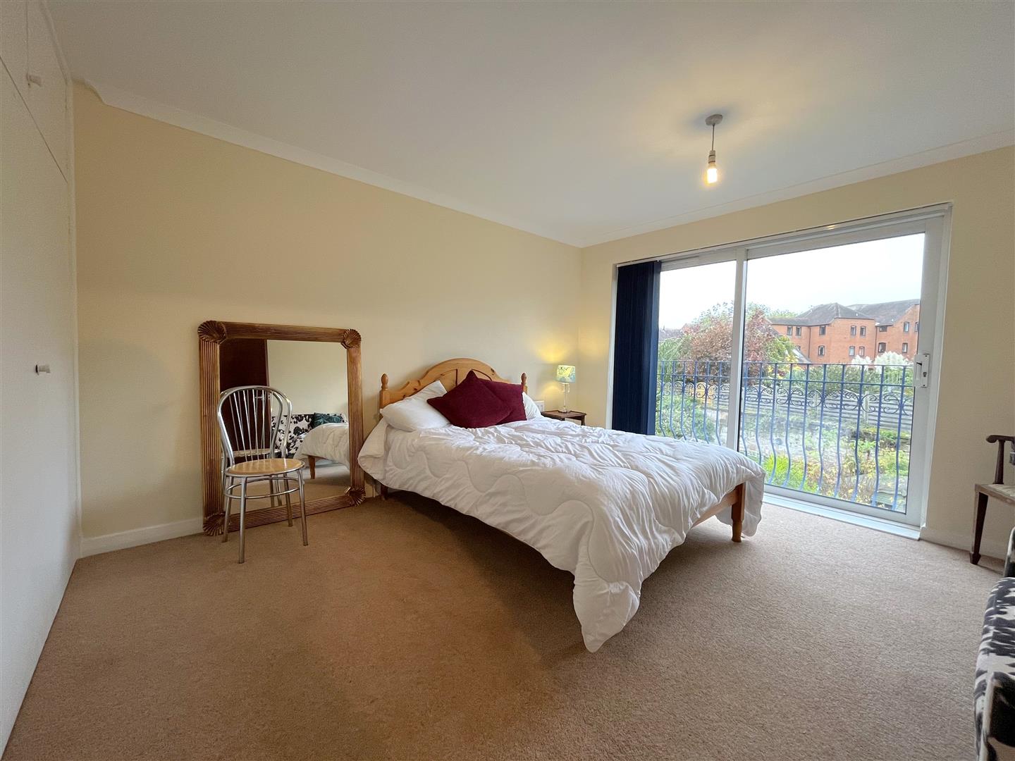 double room to the rear of the of the house with Juliette balcony and patio doors over looking the garden, furniture to include double bed, two side tables. small sofa and built in wardrobes.