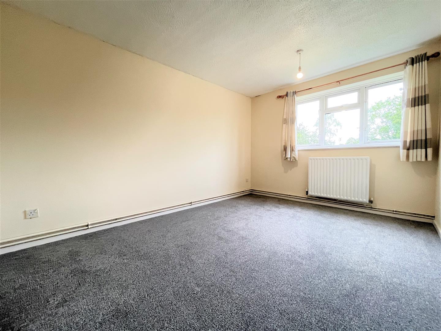 spacious living room with newly fitted carpet, double panel radiator and double glazed windows affording views over the communal green to the front of the property.