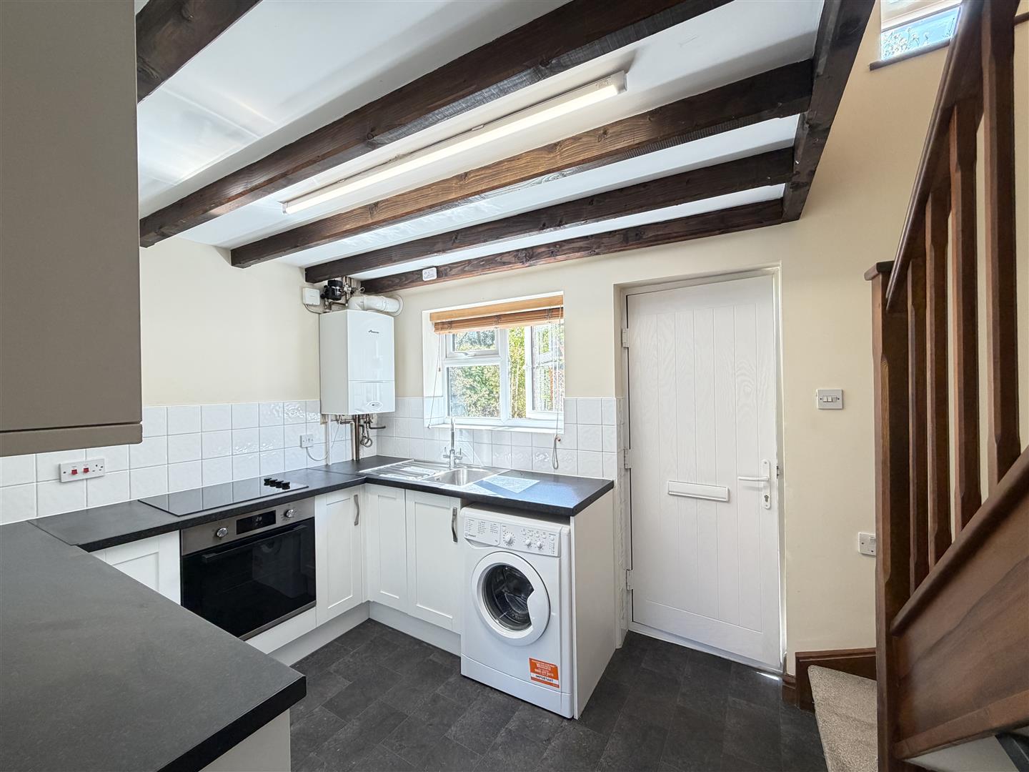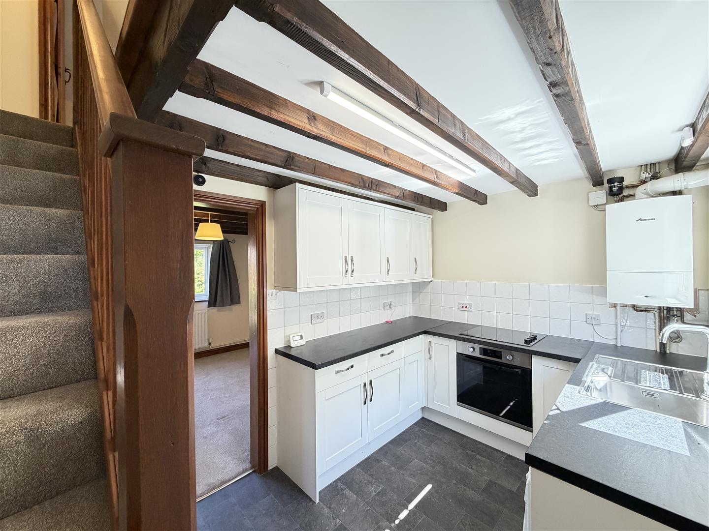 The ground floor includes a living room with exposed beams and a modern kitchen. Upstairs are two good-sized bedrooms and a bathroom with a shower mixer tap over the bath. The property has both front and rear gardens. It also benefits from gas central heating, double glazing, and off road parking.