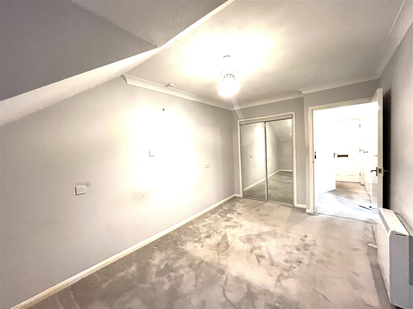 with double-glazed window, coved ceiling, electric night heater, carpeted and the dimensions exclude a mirrored, double door fitted wardrobe with hanging rail and shelf.