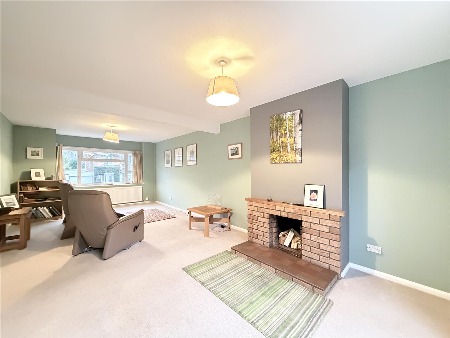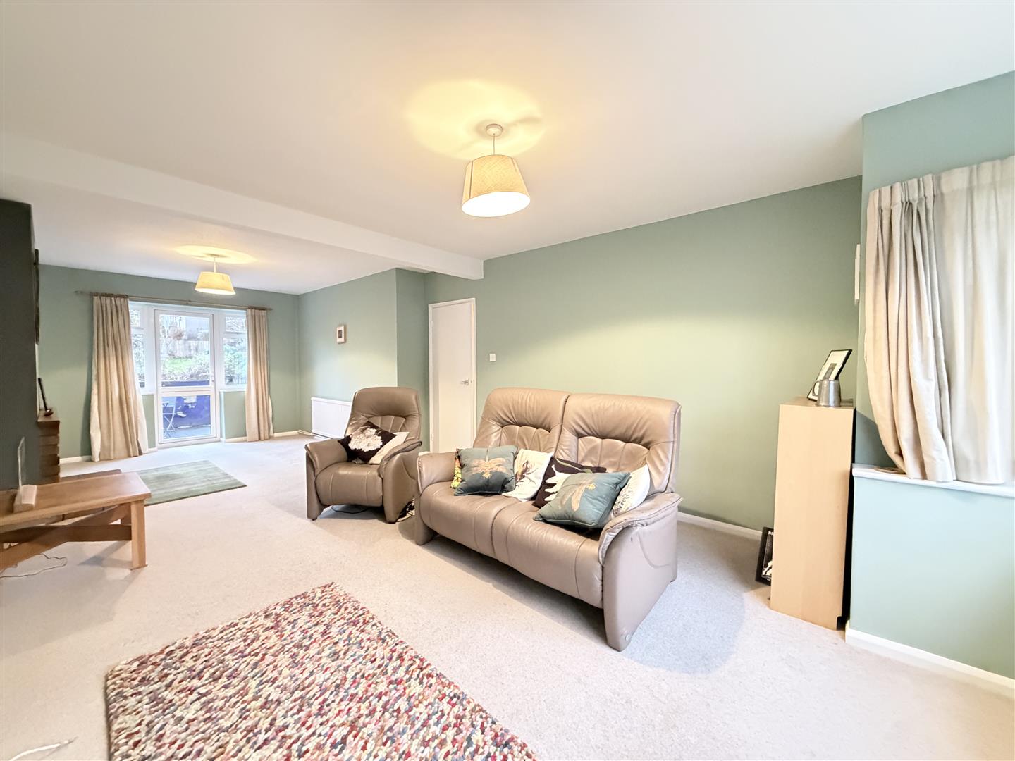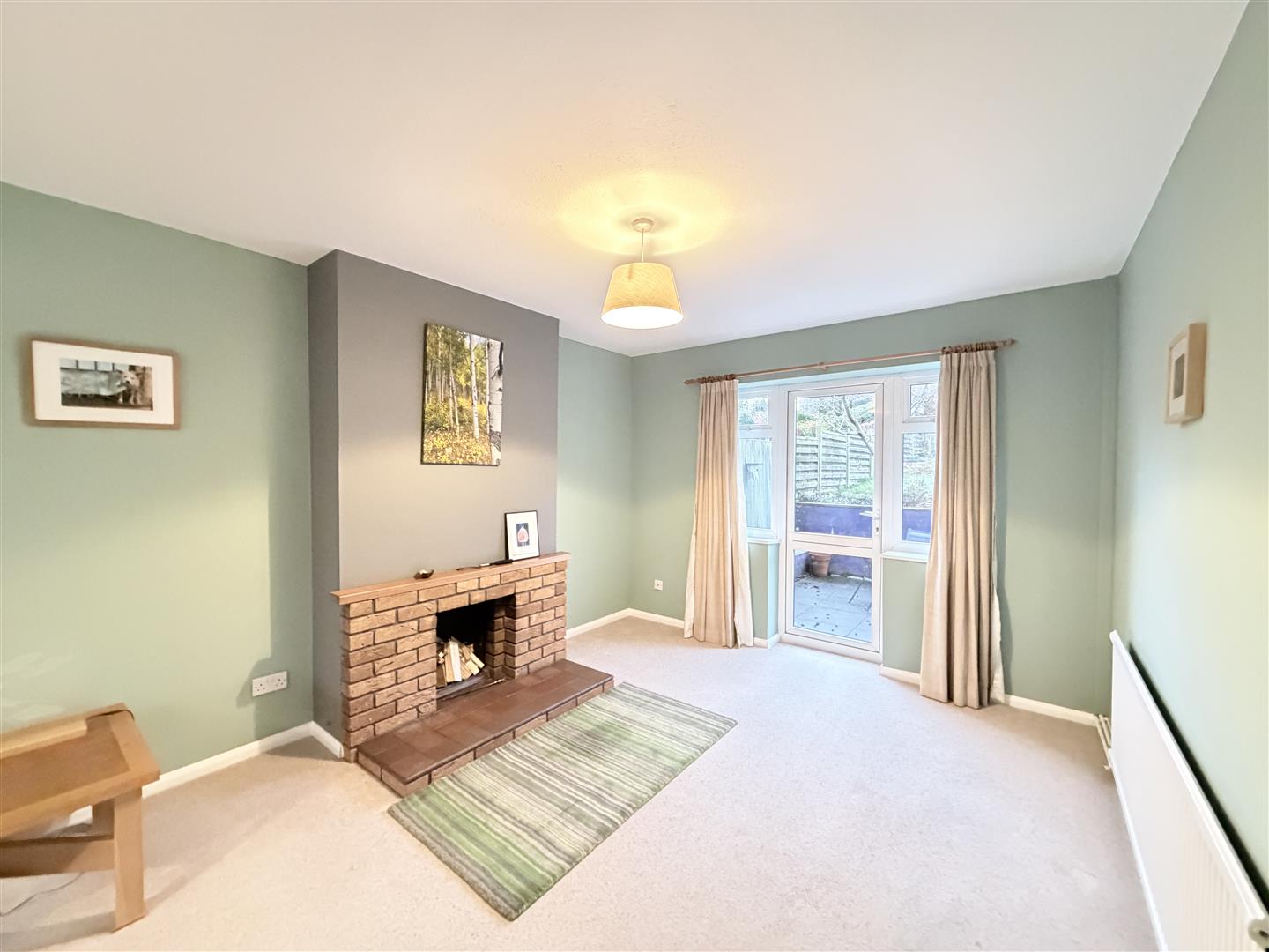 with double glazed window to the front, radiators, open fire setting with tiled hearth and brick surround, and double glazed French door with matching side windows to the rear patio garden.