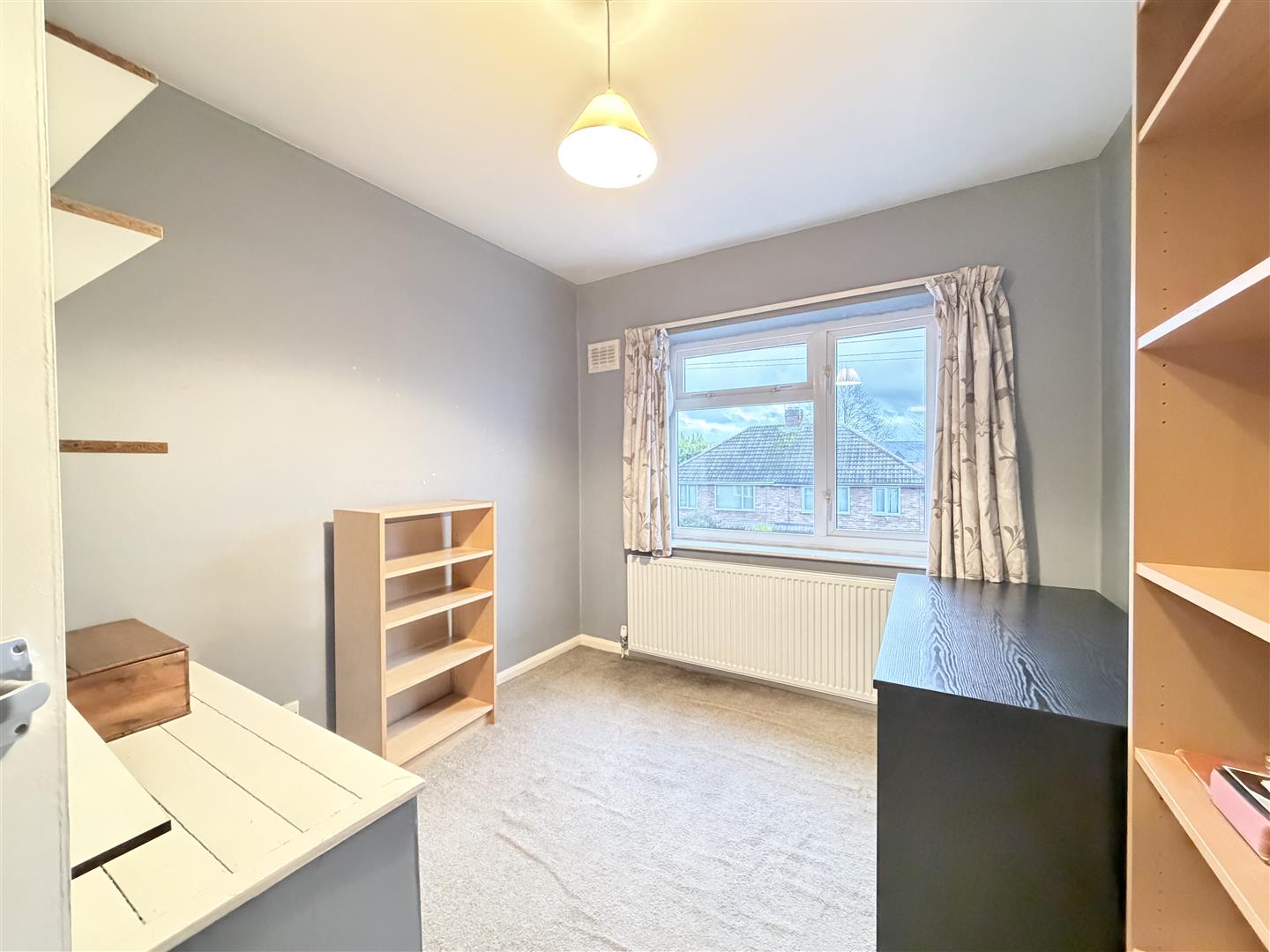 This shows the size of this property, as this is typically much larger than the average third bedroom, with radiator and double glazed window. (The measurements include an area taken by the over stairs bulkhead).