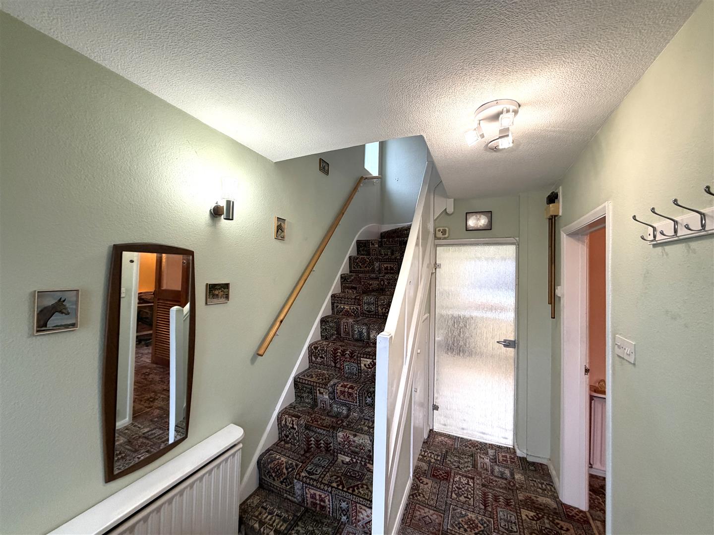 with double panel radiator and door to under stairs storage cupboard and single glazed obscured window.
